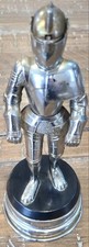 Vintage 8" Metal Chrome Medieval Knight Figural Table Lighter Music Box