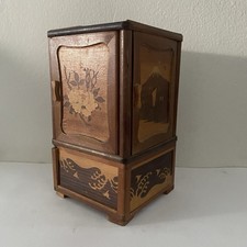 VINTAGE INLAID VENEERED WOOD CIGARRETE DISPENSER CASE HOLDER MUSIC BOX -AS IS-
