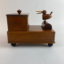 Vintage Wooden Mechanical Bird Cigarette Case Dispenser Music Box 1940s Swiss