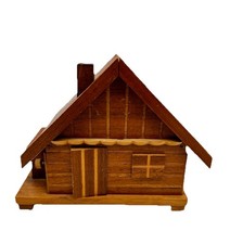 Vintage Wood Log Cabin Music Box Cigarette Dispenser Holder Opens Japan WORKS