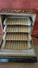 Handmade Antique Wood Cigarette Box Carved Inlay Music Box