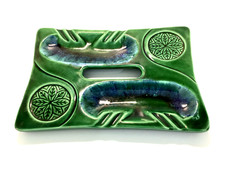 ANTIQUE GREEN & BLUE TONES CERAMIC ASH TRAY WITH CUP HOLDERS NO STAND