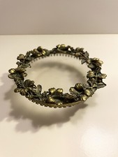 Vintage Hand Carved Flowers Brass and Glass Renaissance Style Ashtray Antique