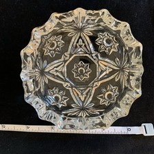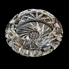 Vintage Antique Lead Cut Crystal Pattern Cigar Ashtray Glass Table Etched Star