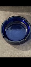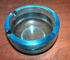 Cute Small Vintage or Antique Ocean Blue Glass Ashtray