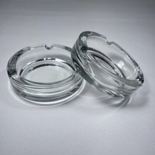 Vintage Round Clear Glass 3 Notch Ashtrays Set of 2 Antique Kitchenware Smoking