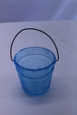 Rare Collectible Blue Glass Bucket with Wire Handle Ashtray Vintage