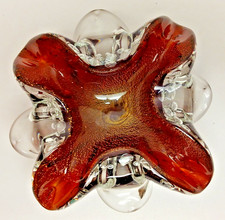 Vintage Murano Bullicante Ashtray/Bowl Handblown Glass -Gold Aventurine Ruffled