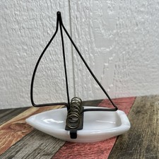Antique Victorian novelty milk white opaline opaque glass Sail Boat Ashtray