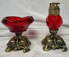 Antique/Vintage Red Glass Table Light & Ashtray Set