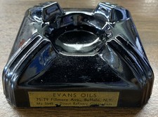 RARE Vintage Antique Buffalo New York Evans Oil Company Glass Ashtray Black