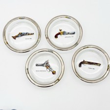 (4) Vintage Antique Pistol Print Glass Ashtray With Silver Rim