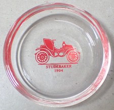 Vintage Round Glass Ashtray w/ Red Studebaker 1904 Graphics Antique Automobile