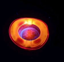 Vintage Amberina /Cadmium Glass Top Hat Ashtray Cambridge? glows yellow on rim