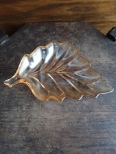 Antique Vintage Glass Yellow Gold Ash Tray Shaped of a Leaf Unmarked 6.5" Long