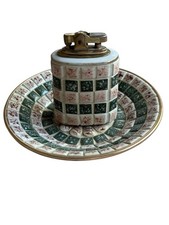Vintage Mosaic Ceramic Tile Table Lighter And Trivet Mid Century Untested