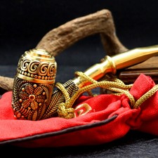 Vintage Luxury Wood Smoking Pipe - Hand-Carved Tobacco Cigar Gift Set