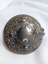 Vtg Mirrored Silver Plate Compact Floral Repousse Design Mid Century