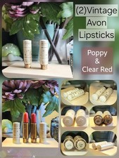 2 Vintage Avon Lipstick Poppy And Clear Red Metal Decorative Tubes Mid-Century