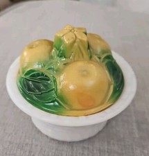 VINTAGE MID CENTURY MODERN BASKETWEAVE PAINTED FRUIT MILK GLASS BOX W PERFUMES
