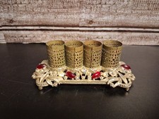 Vintage Mid Century Perfume Cologne Vanity Brass Bottle Holder Caddy Trio 4.75"