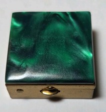 Vintage Brass Pill Box Green Marbled Lucite Resin Lid Mid Century