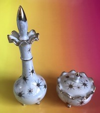 Vintage TILSO JAPAN Mid Century Modern TRINKET BOX & PERFUME BOTTLE VANITY SET