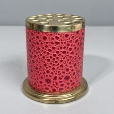Mid Century Brass & Red Faux Shagreen Lipstick Holder Vanity Organizer Pat Pend