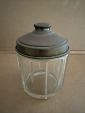 vintage mid century modern pressed glass ribbed jar with metal lid free shipping