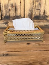 Vintage Mid Century Hollywood Regency Tissue Box Holder Gold Claw Foot Filigree