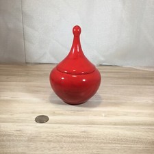 Vintage MCM Red Ceramic Trinket Dish With Lid, Handmade And Painted
