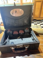 Vintage Mid Century Women's Leather Breifcase Makeup Kit Case Glass Bottles