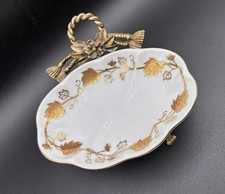 Stylebuilt Footed Ormolu Soap Dish Porcelain w/Gold Leaves Gold Gilt MCM USA