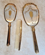 Vintage Mid Century 3 Piece Vanity Set-Hair Brush, Mirror and Comb