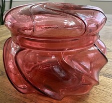 Gorgeous Fenton Cranberry Opalescent Heart Optic Powder Jar. Beaded Lid-Ex Cond