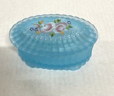 Fenton Hand Painted Blue Lidded Trinket Box, Sticker & Signed By K. Brightbill