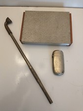 Vintage Malaysian Cigarette Box, Gorham Match Safe & Asian Metal Smoking Pipe