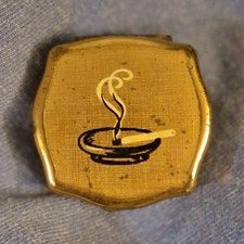 Vintage Metal Pocket Ashtray with Smoking Pipe Motif