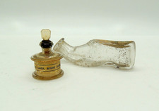 2 Antique Miniature Bottles Perfume Bottle & Boot Shape Bottle Original Labels