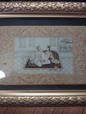 Antique Indian Miniature Painting In Ebony Wood Frame Taj Mahal India