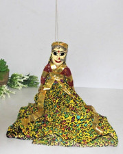 Vintage Rajasthani Wooden Head & Cloth Woman Folk Puppet Toy Handmade Decorative