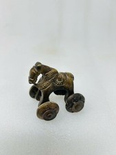 Antique Indian Elephant Toy On Wheels Brass Heavy Metal Vintage Collectors