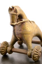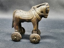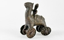ANTIQUE VINTAGE INDIA TEMPLE TOY HORSE ON WHEELS BRONZE FIGURE CHILDREN"S TOY