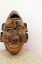 Antique Old Wood Handmade Face Mask Wall Hang Statue, Toy, Collectible