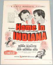 Antique 1944 Movie Ad for HOME IN INDIANA Starring Walter Brennan & Jeanne Crain