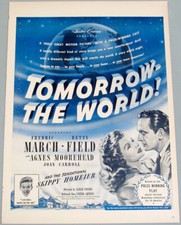 Antique 1944 Ad for the Movie TOMORROW - THE WORLD! Starring Fredric March
