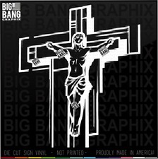 Mid Century Modern Jesus Christ Crucifix Vinyl Decal Sticker Cross Car Window US