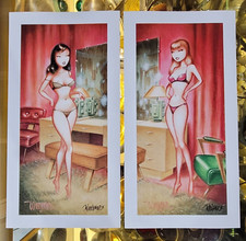 PAIR Signed Keith WEESNER Pin-Up posters vtg mid century modern boudoir GGA art