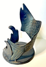 Mid Century Cast Iron Detailed Fish Jumping Bottle Holder Stunning Heavy Piece!
