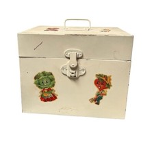 Vintage Mid Century Metal File Box Beige Paint Anthropomorphic Vegetable Decals